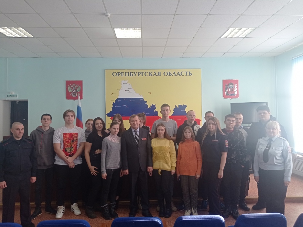 О прошлом и настоящем Отдела МВД России по Сорочинскому городскому округу рассказал председатель Общественного совета Николай Толмачев, призвал ребят после окончания учебы приходить служить в полицию, напомнил студентам о необходимости соблюдать все нормы и правила, установленные законодательством Российской Федерации. и как общественный деятель, предупредил о всех уловках мошенников в сети Интернет