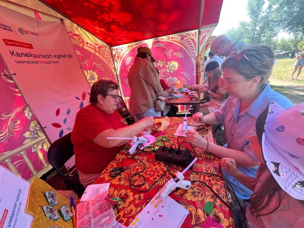 Здесь, в тени деревьев, развернулась пестрая палитра народных искусств. У столов мастеров-ремесленников царило особое оживление. Дети и взрослые, забыв про зной, с увлечением пробовали свои силы в создании татарских украшений.