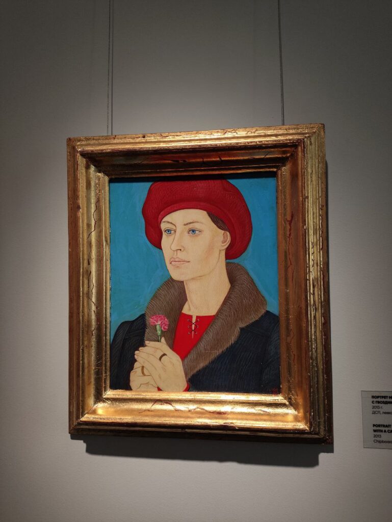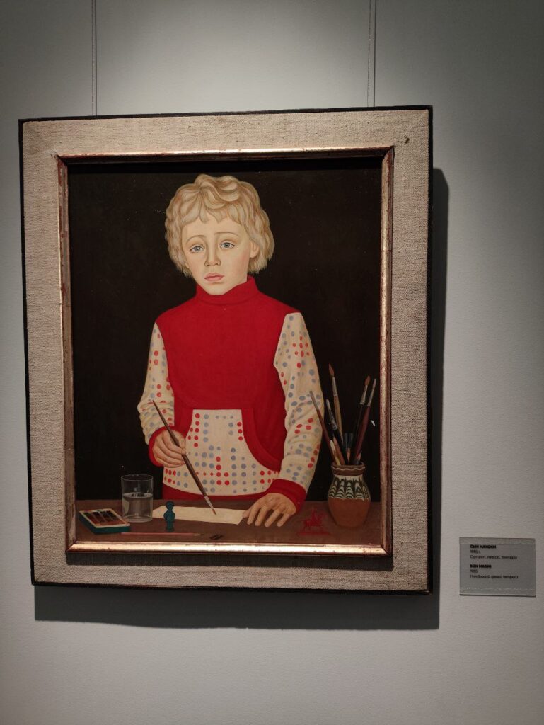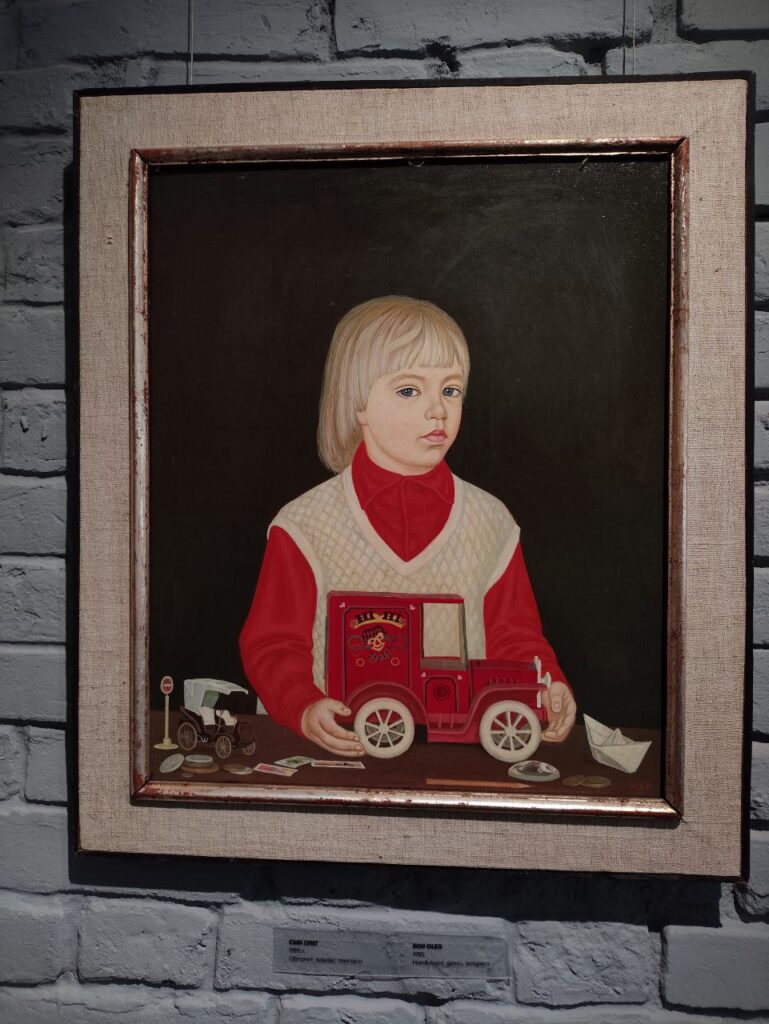Или церковка, или отара, или деревенская окраина. Портреты женщин, детей художника кажутся пришедшими из другой эпохи, так же, как и все залы Реннессанса, но, кинув взгляд на название картин и год появления, невольно впадаешь в когнитивный диссонанс – 2011, 2014, 2024 год. Или просто мы привыкли, что картины в таком стиле писались очень давно, в прошлых веках, что творчество современного художника воспринимается как-то иначе.